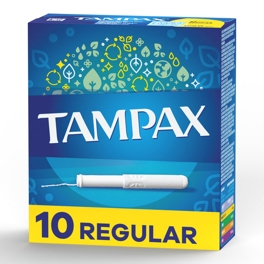 Tampax Cardboard Tampons Regular Absorbency, Anti-Slip Grip, LeakGuard Skirt, Unscented, 10 Count