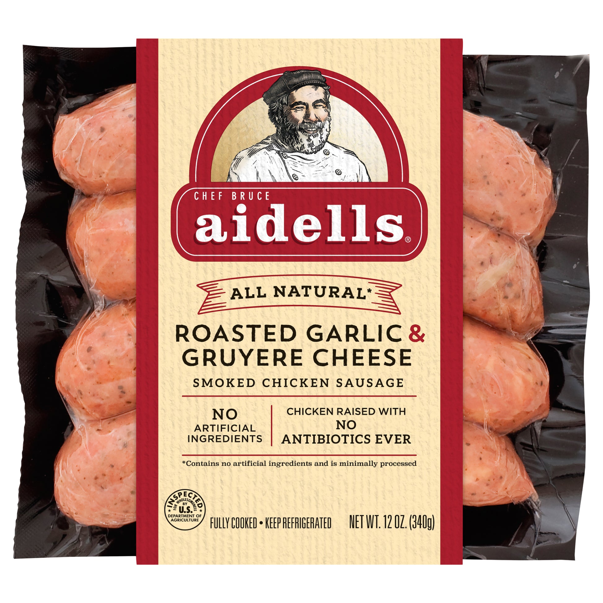 Aidells® Smoked Chicken Sausage, Roasted Garlic & Gruyere Cheese, 12 oz. (4 Fully Cooked Links)
