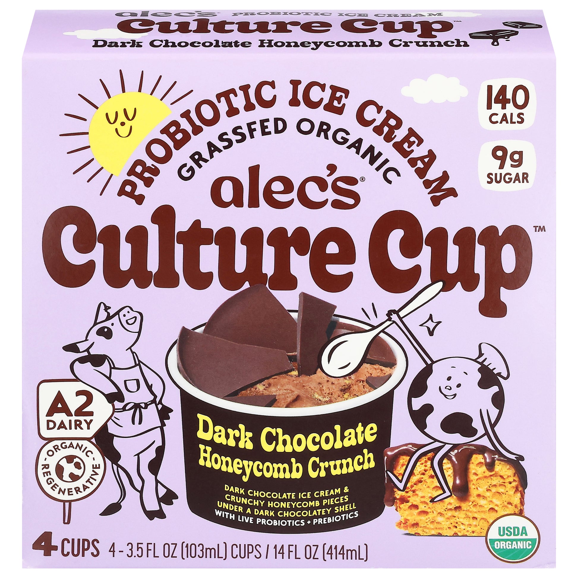 Alec's Culture Cup Dark Chocolate Honeycomb Crunch Probiotic Ice Cream 4 - 3.5 fl oz Cups