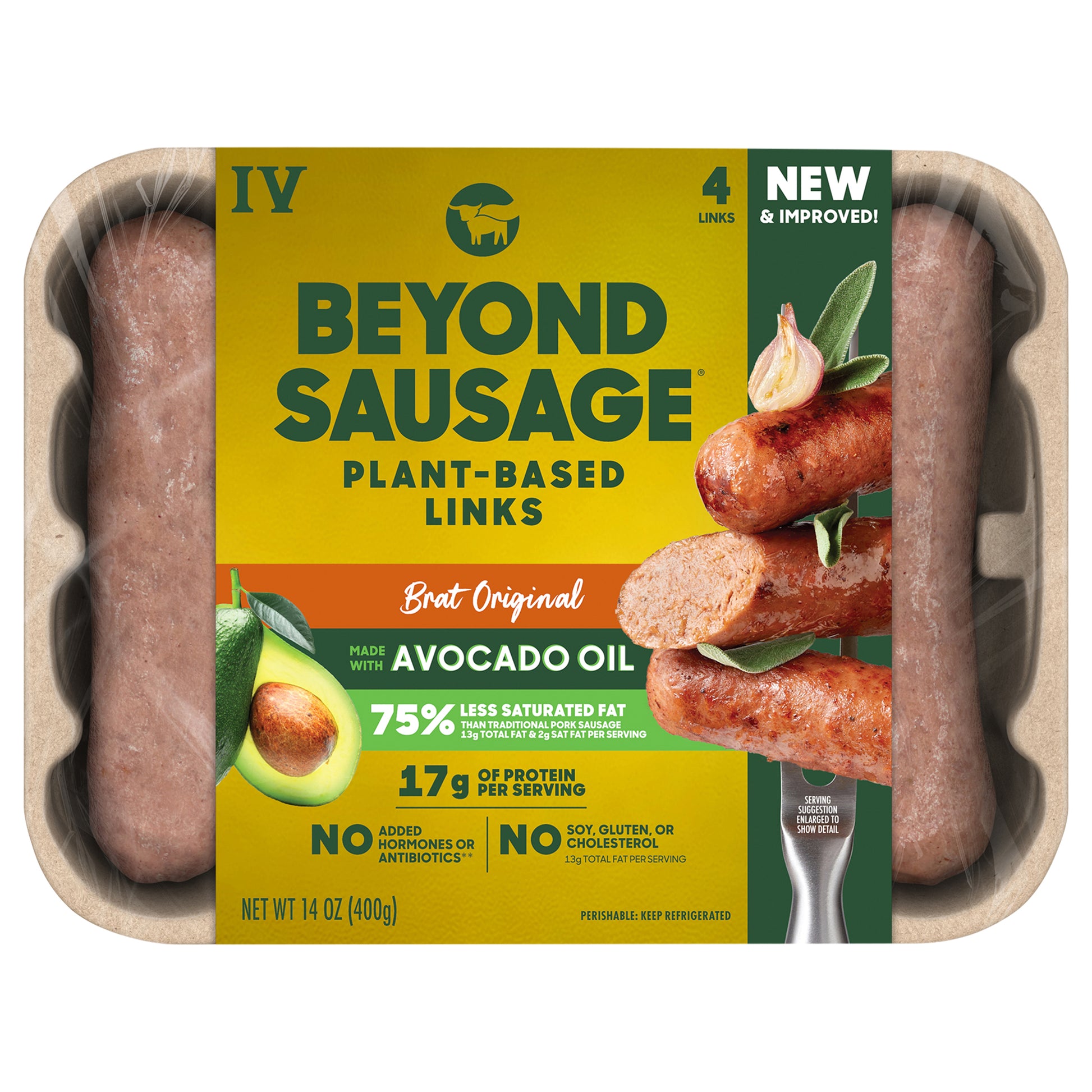 Beyond Meat Beyond Sausage Plant-Based Dinner Sausage Links, Brat Original 14 oz
