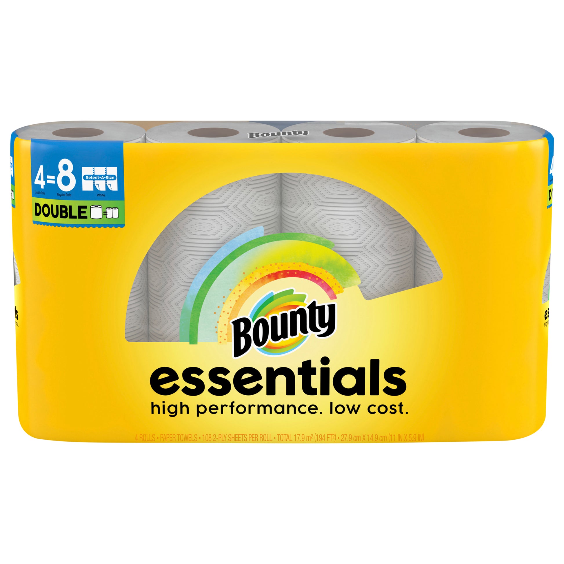 Bounty Essentials Select-A-Size Paper Towels, 4 Double Rolls, White, 108 Sheets Per Roll
