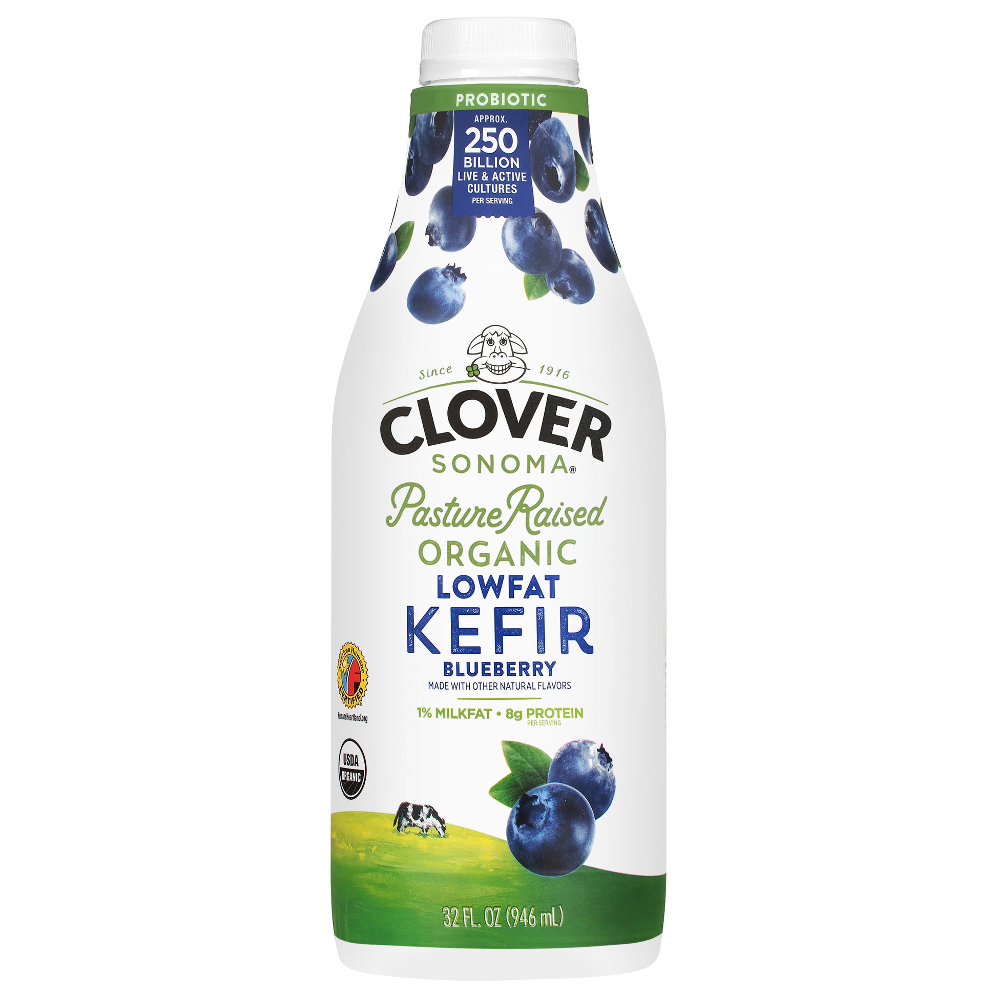 Clover Sonoma 1% Milkfat Organic Lowfat Blueberry Kefir 32 fl oz