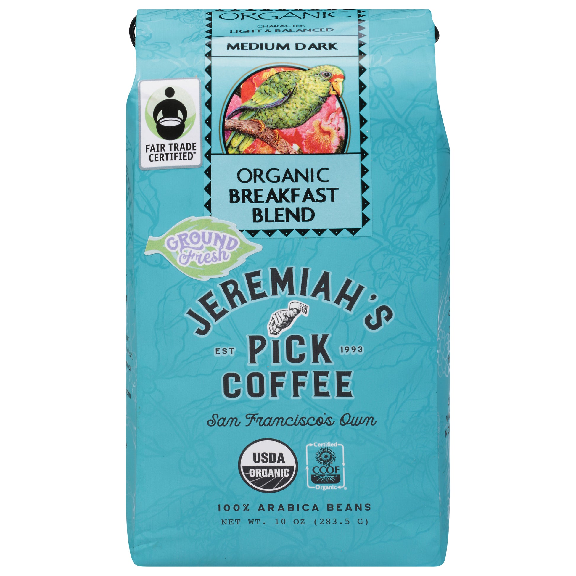 Jeremiah's Pick Coffee Organic Medium Dark Ground Fresh Breakfast Blend Coffee 10 oz