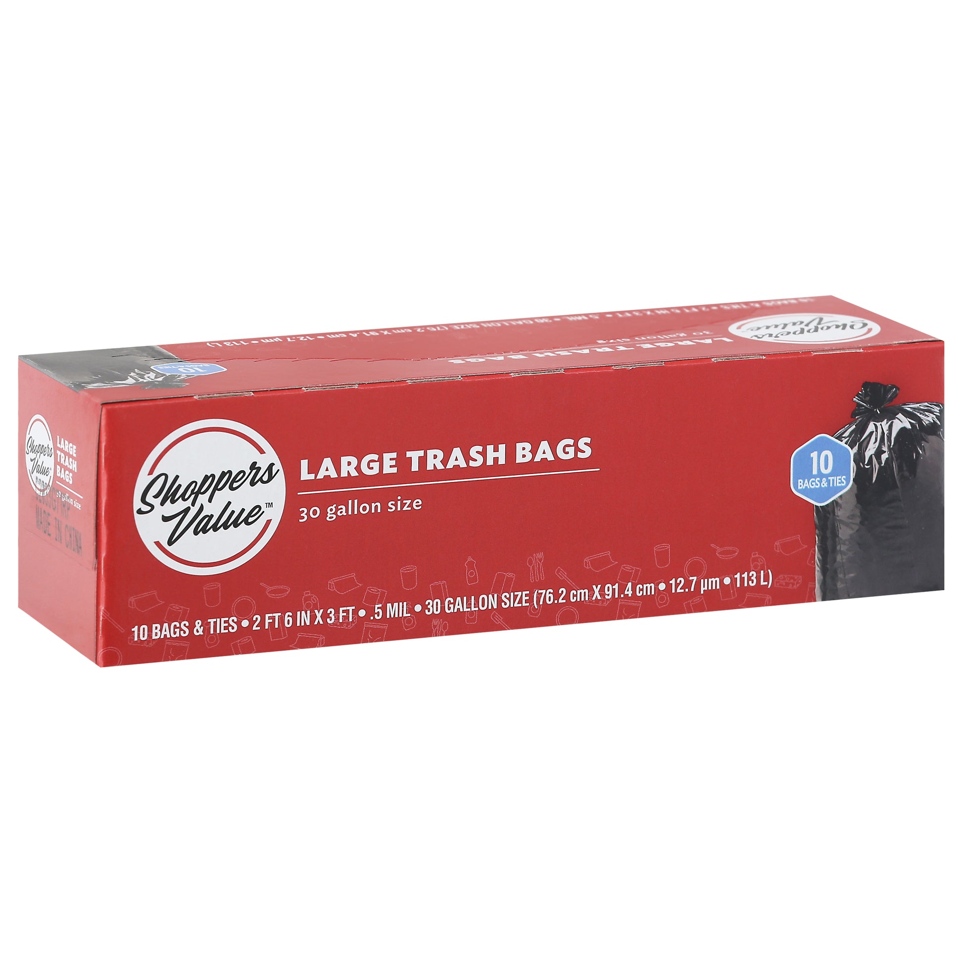 Shoppers Value 30 Gallon Large Trash Bags 10 ea